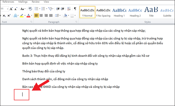 Bước 1: Di chuyển trỏ chuột xuống cuối văn bản hoặc nhấn Ctrl + End để kiểm tra xem trang cuối có chứa văn bản hay không.