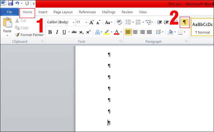 Bước 3: Nhấn tổ hợp phím Ctrl + Shift + 8 (Windows) hoặc Cmd + 8 (Mac) để hiển thị ký tự ẩn ¶.